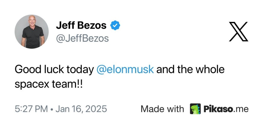 Jeff Bezos le desea mucha suerte a Elon Musk y al equipo de SpaceX